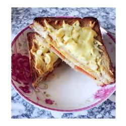 6. Spread sauce on the middle piece of bread, cover it with eggs