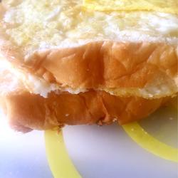 6. Cut another piece of toast and lightly fry it with egg liquid.Place the egg on the previous toast, then put the freshly cut toast with egg liquid on it, and you are ready to eat