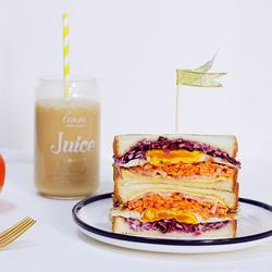 8. Then put the purple cabbage, squeeze the salad dressing, and spread another piece of toast.