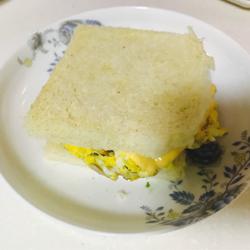 4.After it is cooked, add a piece of cheese slice and heat until soft