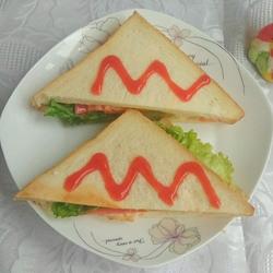 Toast slices, ham, lettuce, eggs ( Two slices of toast, two slices of ham; one piece of lettuce, one egg ) | Oil, tomato sauce ( appropriate amount ) |