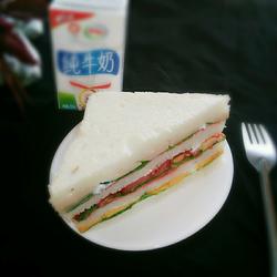 10.Put in a piece of lettuce, then put the cut ham on top, and then squeeze it on top salad dressing.