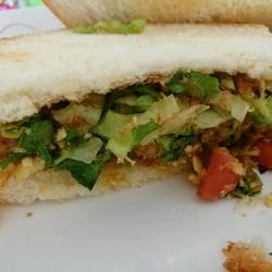 4. After that, the bread slices can be toasted in the bread machine for a while, on low setting.Then just spread the fried ones on top.