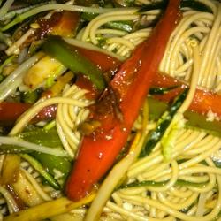 1. Boil water, add a little salt, add alkaline noodles and cook until medium cooked, supercool the water, drain the water and set aside.Put oil, add minced garlic, green and red peppers and stir-fry, add chili sauce, light soy sauce, salt, chicken essence, oyster sauce, add a little water and bring to a boil, turn off the heat, pour shredded radish into the pot and stir evenly, add noodles, cucumber shreds, Add your favorite side dishes, bean sprouts (slightly cooked in noodle soup), sesame oil, mix well, then sprinkle with chopped green onion, coriander, and peanuts