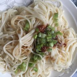 3. Put the noodles into a plate and add an appropriate amount of soybean paste (usually a bowl of noodles The size of an ordinary ceramic spoon is like a spoonful.You can put a little less first, and then add more if it is not enough after mixing.), add green onions cut into small pieces