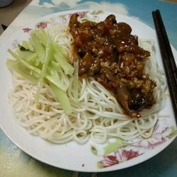 5.Finally, put the noodles on a plate, top with minced meat sauce and top with cucumber shreds and you are ready to eat