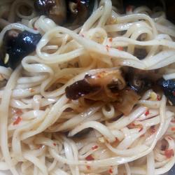 When adding cooked mushrooms to noodles and stirring, be sure to stir in one direction, otherwise the noodles will turn yellow and taste wrong.