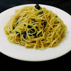8.Pour in the seasoning and turn off the heat, then pour in the noodles and stir evenly