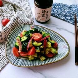 5. Prepare Xiangchou Fresh Soybean Sauce, add the chopped cucumbers, cherry tomatoes and onions.Place in a large bowl.