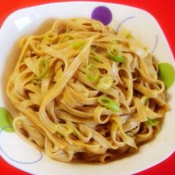 6.Pour the prepared sauce into a bowl, add noodles, and add chopped green onion