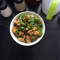 5.After the green peppers are cut off, add a little salt and chicken essence and take it out of the pot.