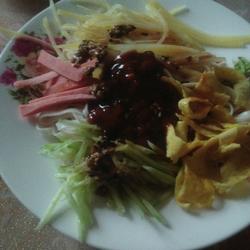 • 5.Put noodles, shredded vegetables on a plate, add a spoonful of soybean paste, mix well and you're ready to eat!