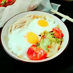 8.Noodles picked out in a bowl , put marinated and fried eggs on top.Finish.