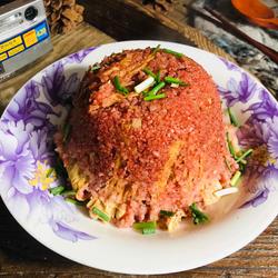 8.Put it into a bowl and put it into a hot water pot.Cover the pot, turn to low heat and steam for half an hour