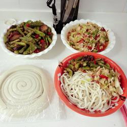 3. After frying the vegetables, you can pull the noodles and roll them in boiling water three times.You can take it out, rinse it with cold water, mix it with vegetables and you can eat it.We Xinjiang people use cold water to wash our noodles.