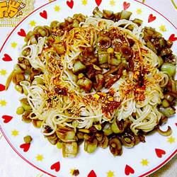 The old and young kidney beans can also be replaced with green kidney beans or other vegetables.Be sure to mix the noodles with oil after taking them out, otherwise they will stick together