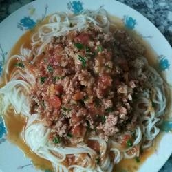 Be sure to use low heat when frying the meat and cooking the sauce, and keep crushing the tomatoes with a spoon so that the sauce will be thick.You can cook the noodles first, and then cook the noodles.You can save time by cutting the materials well