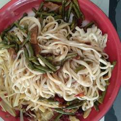 16.Then add the two fried vegetables just now to the noodles in appropriate amounts.
