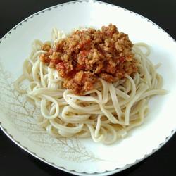 13.Place the noodles on a plate, top with minced tomatoes and minced meat, mix well and enjoy
