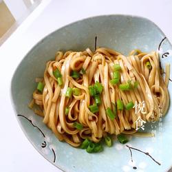 5. Add one tablespoon of dark soy sauce and two tablespoons of light soy sauce to the noodles and fry them Three tablespoons of scallion oil.