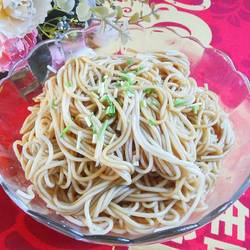 7.Put the noodles into a large bowl and pour in the prepared juice