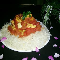 7. Heat the oil again, add in the cut pieces of the large tomato and stir-fry Three times.