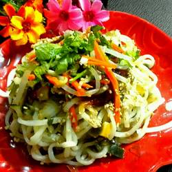 9.Place the noodles into a bowl of cold boiled water and let cool