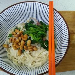 6.Cooked spinach Pour away the water, put another water to boil, put the noodles in, (depending on the thickness of the noodles), pick it up after about 3 minutes of boiling