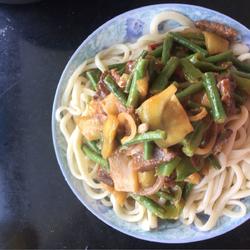 7.Oil bias Heat more, add onion and ginger to the pan and stir-fry the meat.