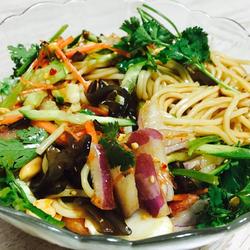 I like to mix it first Noodles, and then add cucumber shreds, onion shreds and other ingredients.In that case, the dish will be more refreshing and delicious