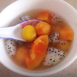 2. Knead them into small balls and set aside.Prepare the fruits.I used dragon fruit and papaya here, but you can also use your favorite fruits