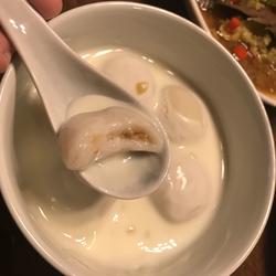 1.When the glutinous rice balls are cooked and float, take them out with a slotted spoon and let them cool slightly
