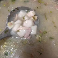 6.When the water boils, add the glutinous rice balls and cook them.Once cooked and seasoned, add chopped green onion and Yuanxi and you are ready to eat