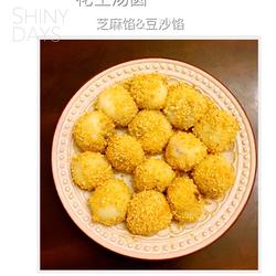 3. Wrap glutinous rice balls with black sesame and red bean paste fillings.(The bean paste filling is bought ready-made)