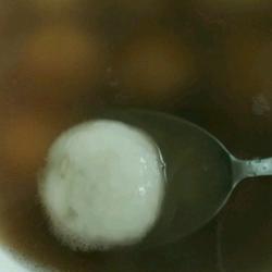 3.Put the glutinous rice flour into a basin, prepare a basin of water, put the stuffing in and roll it, use a slotted spoon to take it out and put it in the water, then put it into the basin of glutinous rice flour and roll it again, go back and forth like this 5, 6 times