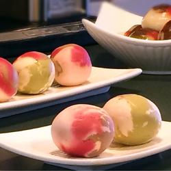 1. Heat 210 grams of glutinous rice flour and knead it into a smooth dough (white).Dissolve the green tea powder and cocoa powder with boiling water and add 30 grams of glutinous rice flour.Knead 3 grams of glutinous rice flour into a smooth dough, take beet juice and directly add 30 grams of glutinous rice flour to knead into a smooth dough, set aside;