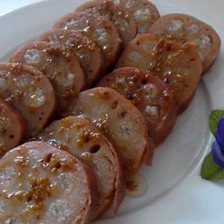 9. Slice the glutinous rice lotus root, place it on a plate, and top with sugar osmanthus