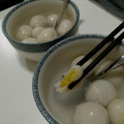 Dip the wrapped glutinous rice balls immediately with glutinous rice flour to avoid being sticky