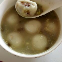 2. While making glutinous rice balls While the mung bean soup is cooking, when the mung bean soup is almost boiling, put down the wrapped glutinous rice balls until the glutinous rice balls float and are cooked