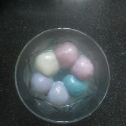 3. Add the prepared colored hot water to the glutinous rice flour, mix well and form a glutinous rice ball.