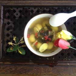 12.Put in the glutinous rice balls, cover, cook until they float and immediately turn off the heat,