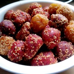 It should be noted that fried peanuts and sesame seeds must be fried over low heat to avoid burning.When frying small sesame balls, frying must be over medium heat!