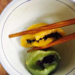 3.Slice the purple sweet potato and cook it in the pot2.1.Pour out the purple sweet potato water and divide it into three parts.Add alkali powder into a bowl to make it green.Add a few drops of lemon water to the bowl according to your color requirements.Add glutinous rice balls powder in appropriate amounts to prepare the noodles
