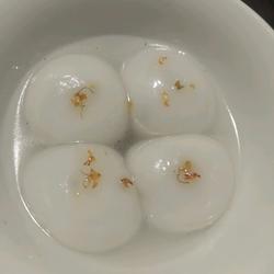 4. Put the glutinous rice balls in boiling water and cook them out.Mix dried osmanthus and honey and put it on the scooped glutinous rice balls for decoration.