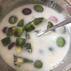 3.Cut the fruit.You can put any fruit you like.I put kiwi because I like sour fruits^^