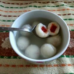 9. Add water to the pot and bring to a boil, add glutinous rice balls.
