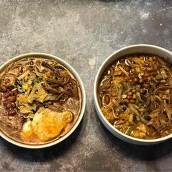 8. Boil Pour the soup base with vegetable buns into the snail noodle bowl, add day lily, sprinkle with peanuts, add fried eggs, and add chili oil according to personal taste (the soup base itself is already a bit spicy)