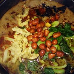 4. Put the hot pot base ingredients, garlic and ginger foam in the oil pan, stir-fry, add water, and adjust Salt and chicken essence!