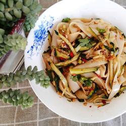 4.Then mix the juice and pour it in On top of the roll noodles, place cucumbers and sprinkle with chopped green onion and coriander
