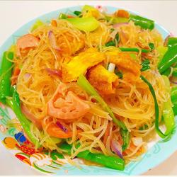 1.Stir-fry the side dishes until they are about half-cooked before adding rice noodles